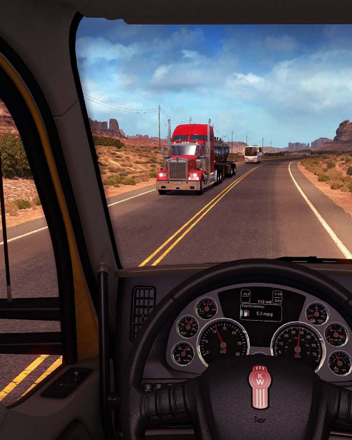 • Vive la vida del conductor: Sal de la cabina, compra comida, duerme, reposta y explora.